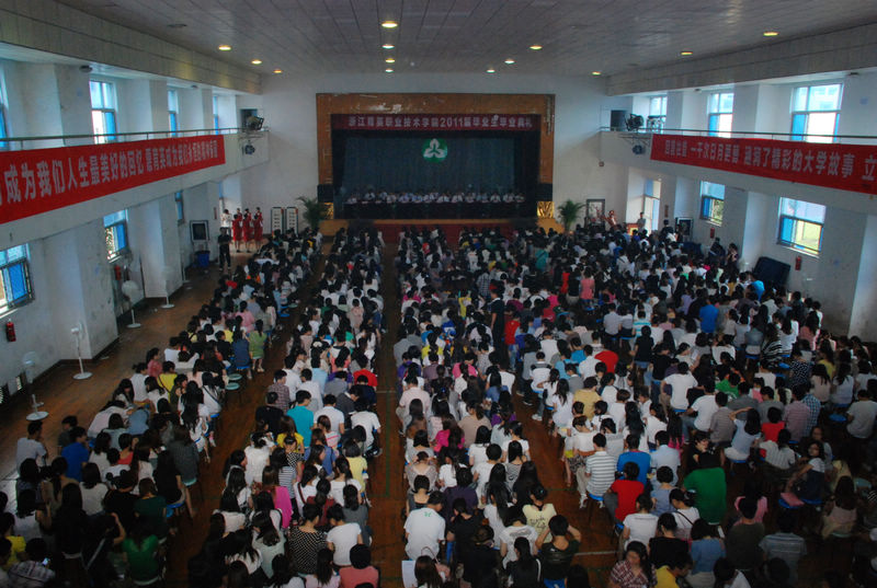 “回首往昔,一千次日月更替,涵润了精彩的大学故事;立足未来, 几十年职业生涯,承续着不息的育英精神。” 校园里到处彩旗飘飘,大红拱门立起来,深情款款的横幅挂起来, 6月17日,2011届毕业典礼在体育馆隆重举行。院领导洪致平、周治斌、陈六明、黄爱平、秦学礼及分院、系部领导出席,1800余名2011届毕业生参加。