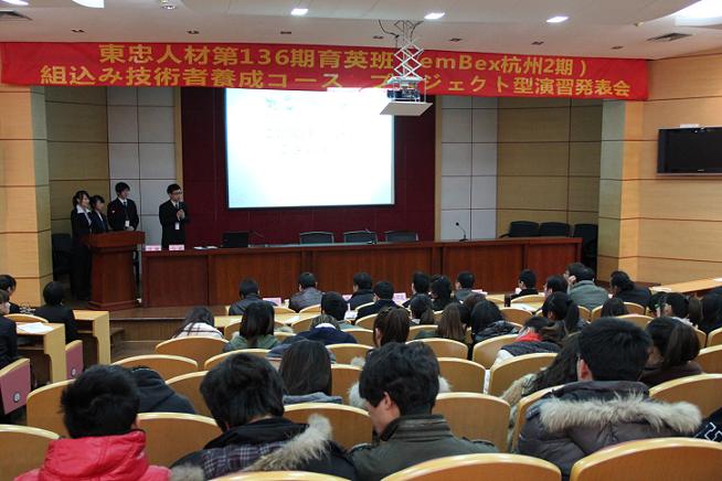 东忠136期育英班是由我院和杭州东忠人才开发有限公司共同合作培养的第一期,由18名应用日语专业的学生组成。主要是培养具有日语素养的计算机软件开发的专门人才。培训结束,同学们可直接进入东忠实习和就业,从事软件外包服务行业。 发表会上担任东忠136期班计算机技术课的日方特派教师马旭老师发言。他介绍说,东忠136期班在为期3个月的培训过程中主要学习计算机软件方面的相关知识,提高日语水平,学习新入社员的商务礼节等。 18名东忠班的学生分为4个小组,展示各自11天研发期限的制作成果。在展示过程中,学生们表现沉稳自信,讲解简练易懂,巧妙机智地回答现场评委的提问。他们的表现得到了现场评委和观众地一致好评。 会上,秦学礼副院长发表讲话。他首先向东忠班的全体学生表示祝贺,为学生们的自信表现感到高兴。作为日语专业的学生,通过三个月的学习完成嵌入式系统的开发实属不易,同学们认真学习的表现、团结协作的态度要延续到以后的学习工作当中。此次培训非常成功,是符合我院职业人培养的思路和模式的,这种合作模式不论对学院还是企业都是应该加以提倡和扩大的。 东忠公司领导向顺利完成作品发表会的同学表示祝贺,并欢迎他们加盟东忠集团,抓住机遇,迎接竞争与挑战。他们表示,希望接下来能与其他专业举办更多的培训班与合作。 (应用日语教研室 宋恩女)