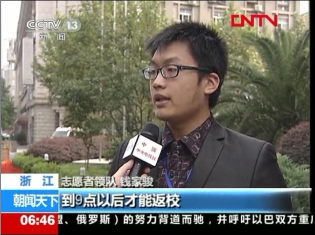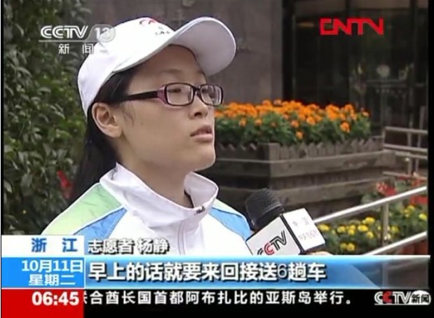 据了解,在杭高校均参与了此次八残会志愿者服务,截止11日,我院志愿者是唯一被CCTV报道的志愿者。此次采访在CCTV13频道《朝闻天下》节目中播出。