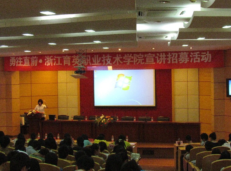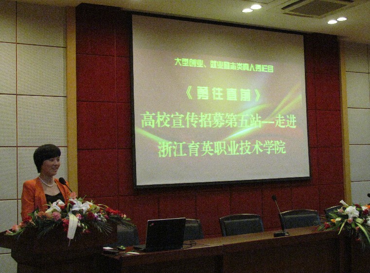 随后,朱青青向大家介绍了共青团推出此活动的目的和意义,宣传团市委在帮助青年就业、创业方面的一些工作举措。杭州电视台编导周丽娜作为活动的主办方对《勇往直前》栏目进行了专题宣讲,帮助学生了解该节目的背景、意义、形式、参与方式等。紧接着,杭州美仑服装有限公司总经理刘鸿雁为在场的同学奉献了一场精彩的职业规划讲座,帮助大学生形成良好的择业观念和正确的见习意识。最后,栏目组对有意向参加《勇往直前》栏目的同学进行了现场招募和面试,共有3位学生入围首批节目录制。据悉,他们将于6月初前往录制,接下来还将有个别优秀学生入围参与下批节目录制。