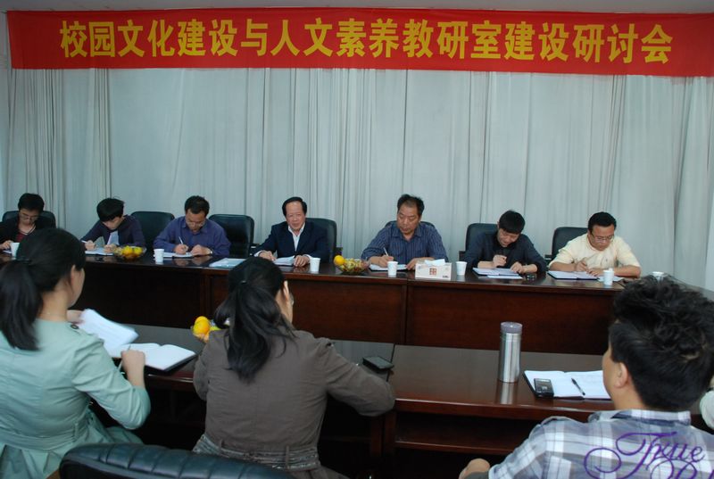 此后不到一个月的10月17日,学院又组织基础部人文素养教研室专题研讨加强校园文化建设与加强人文素养教研室建设的“两个建设”问题。学院党委书记、院长洪致平就如何突破学院的文化建设问题,阐述了他的系统思考。洪致平明确提出学院校园文化建设活动要形成三个体系,即人文艺术教育与活动体系、体育活动体系和科技创新活动体系,着力打造学院校园文化建设新亮点、新特色、新优势、新品牌。会议提出应充分发挥人文素养教研室在加强校园文化建设活动上的功能,要集中多方面力量,形成学院新的发展优势。