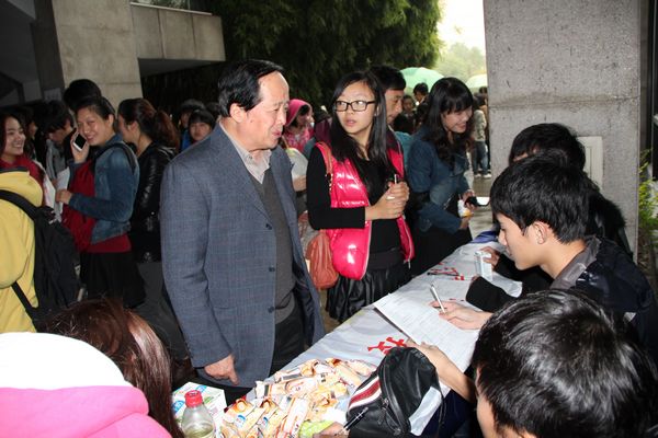 洪致平院长也到大厅,亲切地慰问了献血者和志愿者。各分院、系党总支书记、团总支书记都在现场为学生们加油打气。