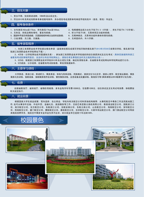 2013年空中乘务专业自主招生招生简章(彩页)