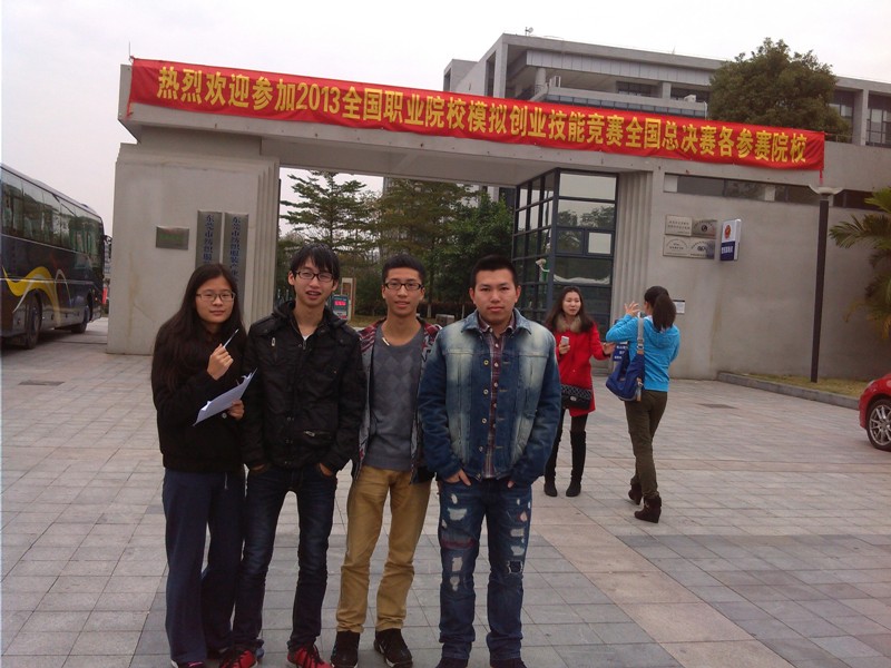 2013全国职业院校模拟创业技能竞赛于2013年12月21日在广东东莞职业技术学院展开全国总决赛之终极对决,从9:00--17:00,历经8个小时的激战,终于落下帷幕。由我院工商管理系电子商务专业学生组成的参赛团队(团队成员是:12电商A班郑瑜莉、12电商B班林腾洲和张凯峰、13电商A班徐奇特,指导教师是方丽珍),在比赛中获得全国总决赛二等奖的优异成绩。其中,郑瑜莉同学是带伤参加比赛的(右脚骨折15天伤未逾),这种参与比赛的热情与精神也值得其他同学学习与敬佩。