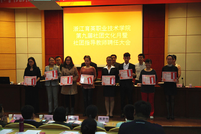 翁方婷和姚蓓蕾分别代表受表彰的优秀指导教师和新聘任的指导教师发言,社团干部代表广播台台长沈晨霞和会员代表蒋明分别发言。学院领导为社团指导教师和社团干部颁发聘书。