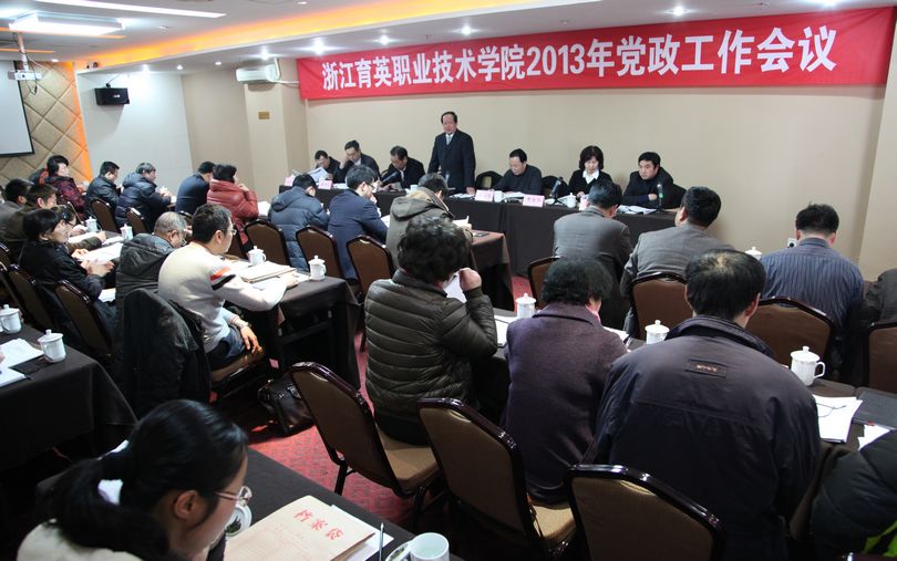 2月21—22日,学院在海宁召开党政工作会议,以党的十八大精神为指导,贯彻落实科学发展观,明确2013年的工作目标和发展形势,以办学15年来形成的自信,激励育英人继续扎实工作,推进学院新发展。学院党委书记、院长洪致平,党委副书记、副院长周治斌,副院长陈六明、黄爱平、秦学礼,院长助理王锡耀以及全体党政中层干部出席会议。会议由学院领导主持。