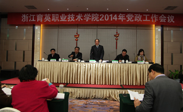 2014年2月15日-16日,学院在海盐召开2014年党政工作会议,学院党委书记、院长洪致平,党委副书记、副院长周治斌,副院长陈六明、黄爱平、王锡耀以及全体党政中层干部出席会议。海盐县教育局副局长杜伟明,海盐县教育局纪委书记蔡卉琳,海盐商贸学校校长戴少华和海盐理工学校校长何永香应邀出席,并介绍海盐经济、教育发展情况。会议由学院领导主持。