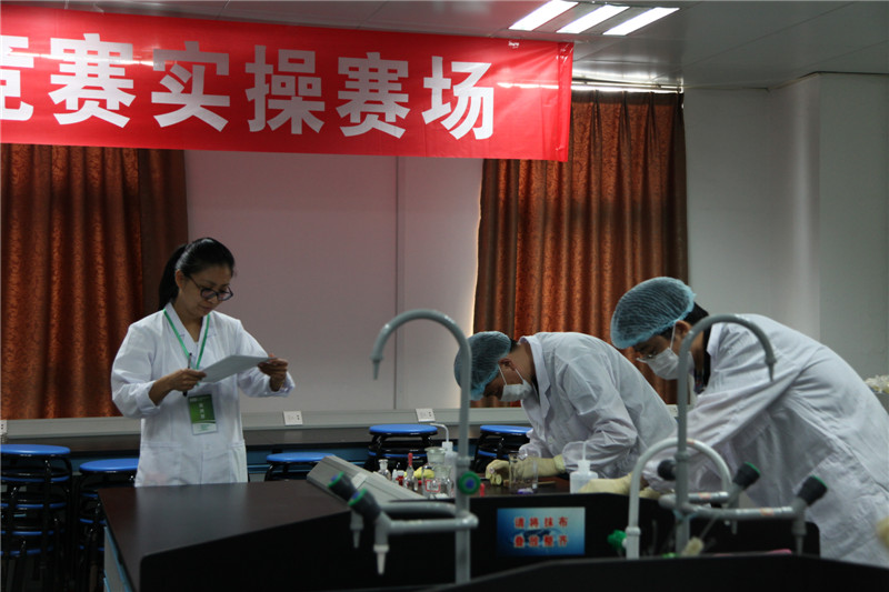 竞赛按食品检验工国家职业标准三级(高级)要求命题,分为理论知识和操作技能两个环节,理论知识采取闭卷笔试方式,占总成绩30%;操作技能采用现场考核方式完成检验项目任务,包含“金黄色葡萄球菌的定性检验”、“茶饮料中茶多酚含量的测定”两大子项目,主要比拼参赛选手对微生物的检测操作水平和理化分析的技术操作水平,占总成绩70%。