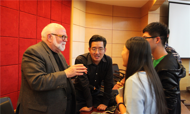 讲座中,卡凯特·希瑞奇分享了自己创作的艺术设计项目,他以新颖的创意方式,结合了现代艺术设计手法,展示了他独特的艺术视角以及扎实的设计功底。作品涉及企业品牌设计、品牌标识、宣传、出版(图书杂志)等,重点讲解了为旧金山葡萄酒庄、美国联合航空公司、南加州大学设计的品牌形象及其详细的设计方法与过程。他诙谐幽默的演讲风格赢得阵阵掌声。凯特·希瑞奇热情回答了现场学生提出的关于艺术设计的相关问题,并为学生签名留念。