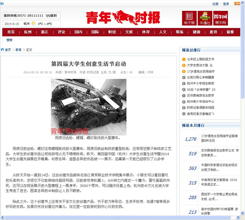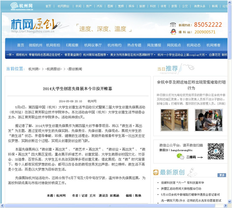 多家媒体报道在我院举办的中国(杭州)大学生创意生活节