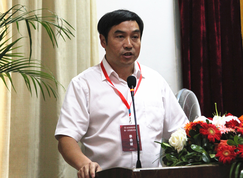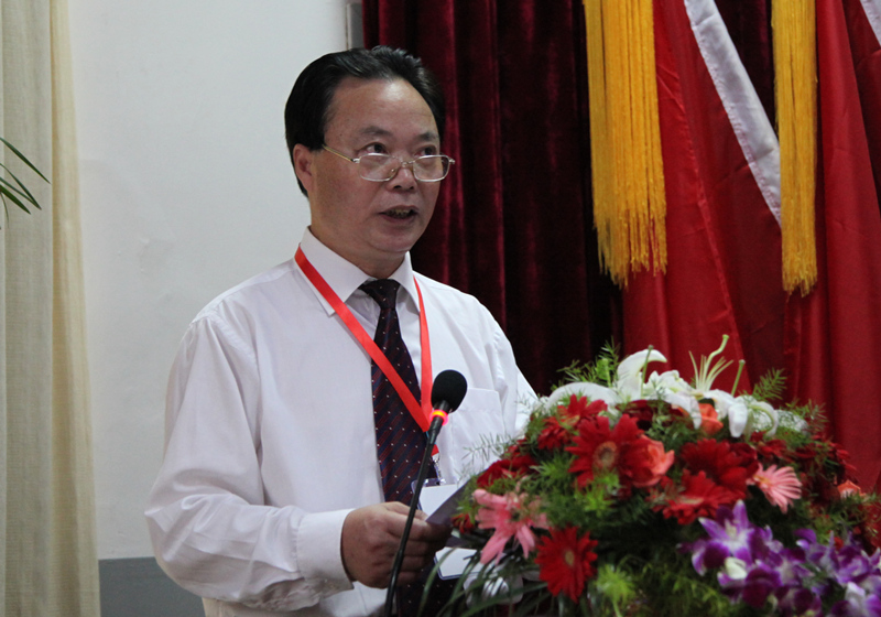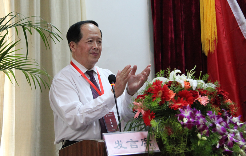 王锡耀代表新当选的“两委”班子向老党委领导洪致平、周治斌献上鲜花,表达敬意和感谢,台下响起热烈的掌声。