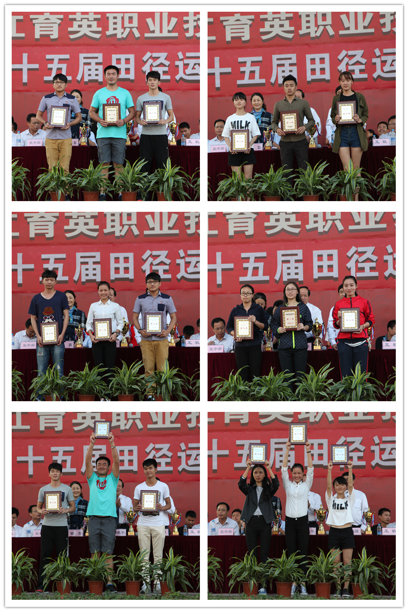 在运动会闭幕式上,学院院长洪致平,党委书记、副院长王锡耀,党委副书记、院长助理谢鑫,院长助理王敏以及分院、系及相关职能部门负责人为获奖个人和团体颁奖。
