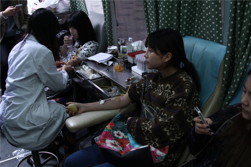 不少学生都献了400毫升,13计应A班杨达已经是第二次献血了,去年献血300毫升,今年又增加了100毫升,他说,“献血对自己的身体并没有什么不良影响,更重要的是自己的鲜血能够延续和挽救他人的生命,内心里感觉还是挺神圣的。”