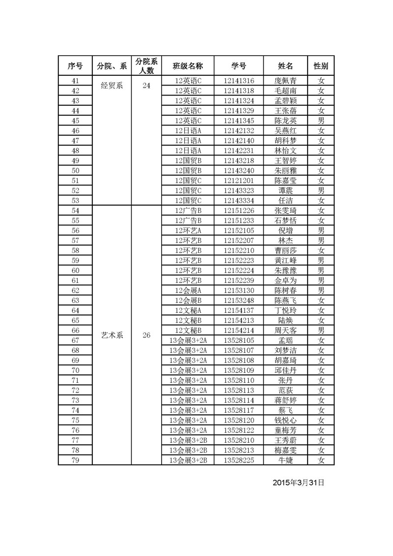 2015年专升本报名初审工作已经结束,现将初审合格考生名单进行公示(名单详见附件),公示时间10个工作日,若有异议,请联系教务处方老师,联系电话:86877015(内线7015)。