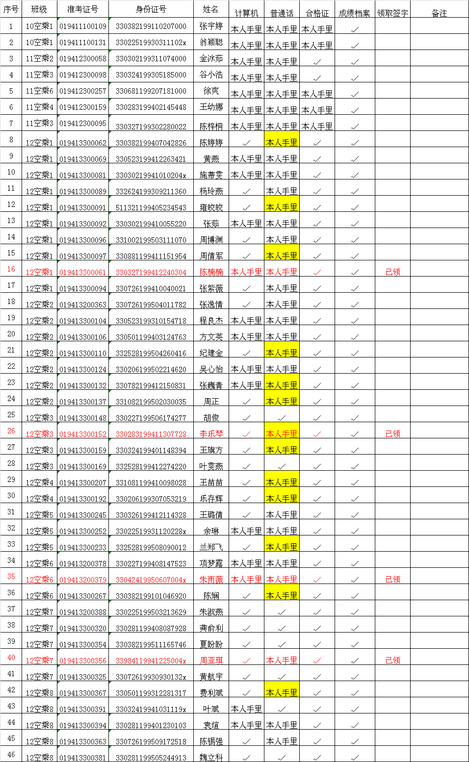2015年5月办理毕业手续证书自带清单(10.11.12级)