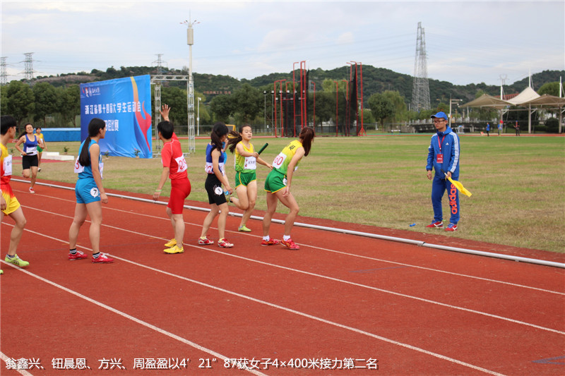 14网络班梁孝漂以3.75米获男子撑杆跳第一名,打破大会乙组纪录。15空乘J班俞凯以41.77米获男子铁饼第一名,打破大会乙组纪录。13轨道A班曹晨敏以35.08米获女子铁饼第一名。15空乘J班陈宇良以37.27米获男子铁饼第二名,打破大会乙组纪录。14英语B班蒋福华以3.50米获男子撑杆跳第二名。翁鑫兴、钮晨恩、方兴、周盈盈以4’21”87获女子4×400米接力第二名。15空乘J班吕水朦以29.96米获女子铁饼第三名。14安检A班柯政以33.35米获男子铁饼第四名。