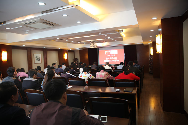 2016年4月25日中午,机关党总支服务G20峰会动员大会在综合楼十楼会议室召开。机关全体党员参加会议。应机关党总支邀请,学院院长洪致平作重要讲话,机关党总支书记夏瑛主持会议并做动员报告。