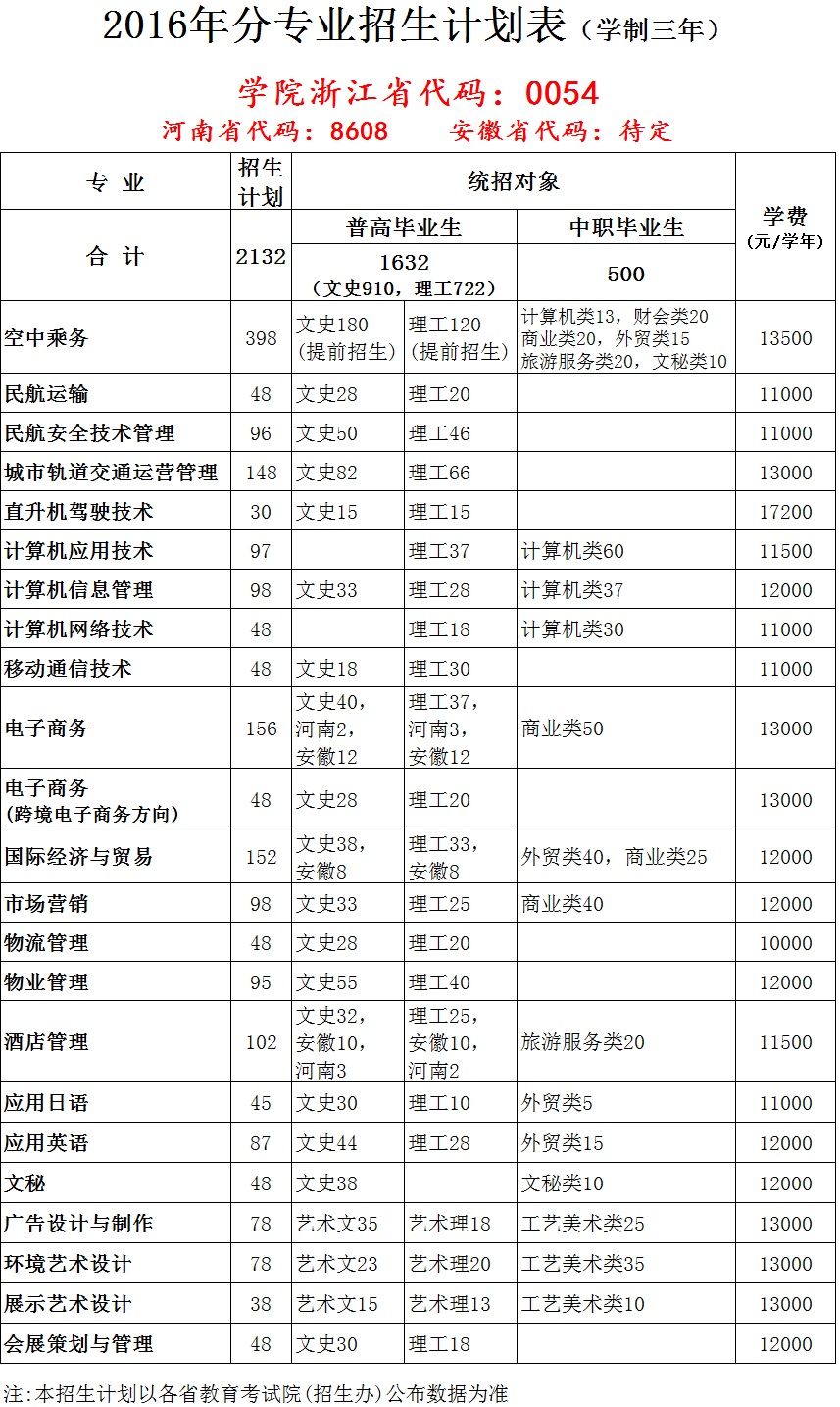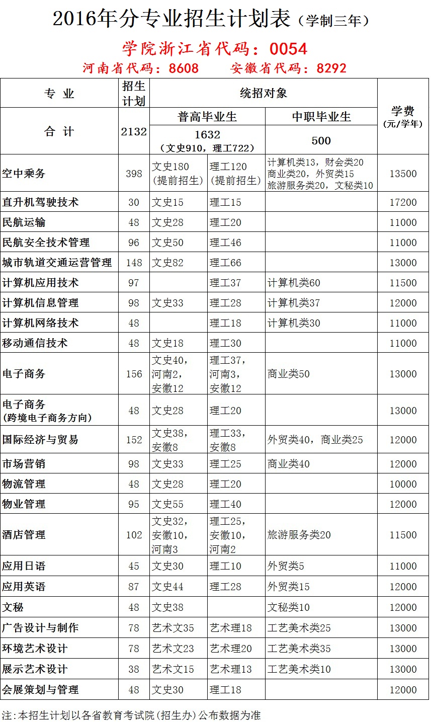 我院2016年分专业分类别招生计划表