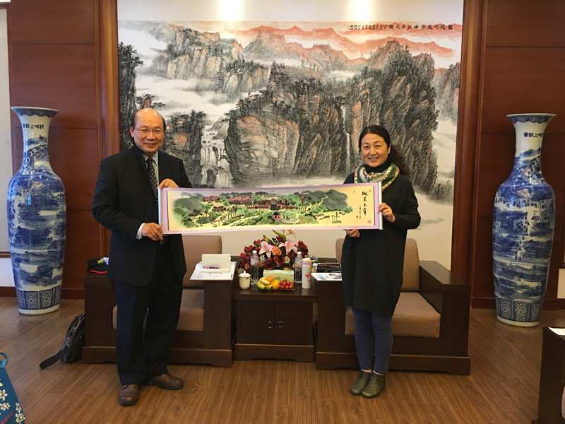 学院党委副书记、院长助理谢鑫在九楼接待室与刘玉山副校长一行进行会谈。谢鑫介绍了我院基本办学情况和近年来对台交流工作。刘玉山介绍了大华科技大学的历史、办学条件、办学理念、专业设置、学生活动等情况,详细介绍了酒店、文化创意、客家人文化研究等专业以及国际交流方等。