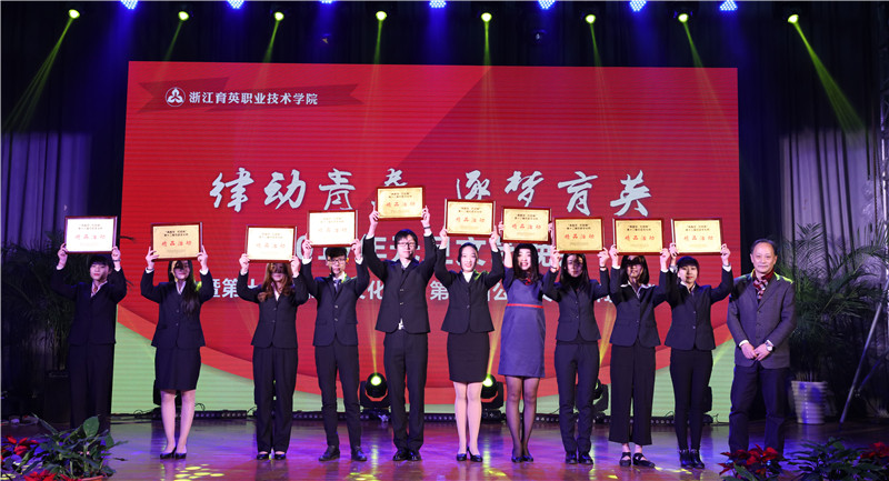 12月27日晚,“律动青春 逐梦育英”2017元旦文艺晚会暨第十二届社团文化月、第三届公寓文化节闭幕式在学院体育馆举行。学院院长盛健,党委书记、副院长王锡耀,党委副书记、副院长谢鑫,副院长王敏,分院、行政处室负责人及学生代表1000余人观看了表演。 盛健致新年贺词,他表示,第一次在这个校园里与大家共迎新年,感到既温暖又欣喜。温暖的是,下午与老师们在贤园餐厅一起包饺子、吃饺子,吃的是饺子,暖的是内心;晚上,又与全院师生代表欢聚一堂,沉浸在喜庆、祥和、团圆的跨年氛围中。2016,我们的学生在过去一年追寻梦想,不畏高手,努力拼搏,让“育英”的名字一次次载入各类比赛的史册。2017,希望每一位学生用自己的努力,更好地成长;2017,希望每一位老师用自己的努力,更好地发展;2017,我们的学院会成为一个更好的幸福家园! 第一篇章“韵启艺舟 扬帆起航”的5个节目由大学生艺术团选送,曾在浙江省大学生艺术节获戏剧类一等奖、舞蹈类二等奖,学生们再次演绎了戏剧《生命不止于···》和舞蹈《傩月》,节目可谓看头十足。器乐《克罗地亚狂想曲》、小组唱《追梦》和戏曲《三请樊梨花》精彩不断,吸引着台下观众的目光。 各分院带来晚会的第二篇章“缘启育英 筑梦青春”,各具特色,极具青春激情,节目异彩纷呈,现场掌声不断。 信息技术分院的舞蹈《青春士兵》 、民航交通分院的职业展示《梦想家》、商务贸易分院的舞蹈《激情一夏》、创意设计分院的情景剧《绘梦》、经济管理分院的舞蹈《Laos奇缘》以及继续教育分院、中汽模特、礼仪协会的走秀《相与》高潮迭起,给人留下深刻印象。 第三篇章“征途不止 薪火相传”,2016全国高校巡回演出歌舞《树屋女孩》、街舞社《Hope of rebirth》、大学生艺术团的戏剧《前面有棵树》和舞蹈《摆手女儿家》,或青春欢快,或将我们带入对人生的思考。晚会在合唱《灿烂未来》中落下帷幕,掌声不断。 晚会还为公寓文化节优秀寝室和社团文化月精品活动颁发荣誉奖牌。3116、3107、5304、6526等寝室被评为公寓文化节优秀寝室;樱花日语协会、英语协会、棋社、书友协会等协会的活动被评为社团文化月精品活动。 晚会其间穿插了抽奖环节,气氛活跃,彰显喜庆祥和的节日气氛。