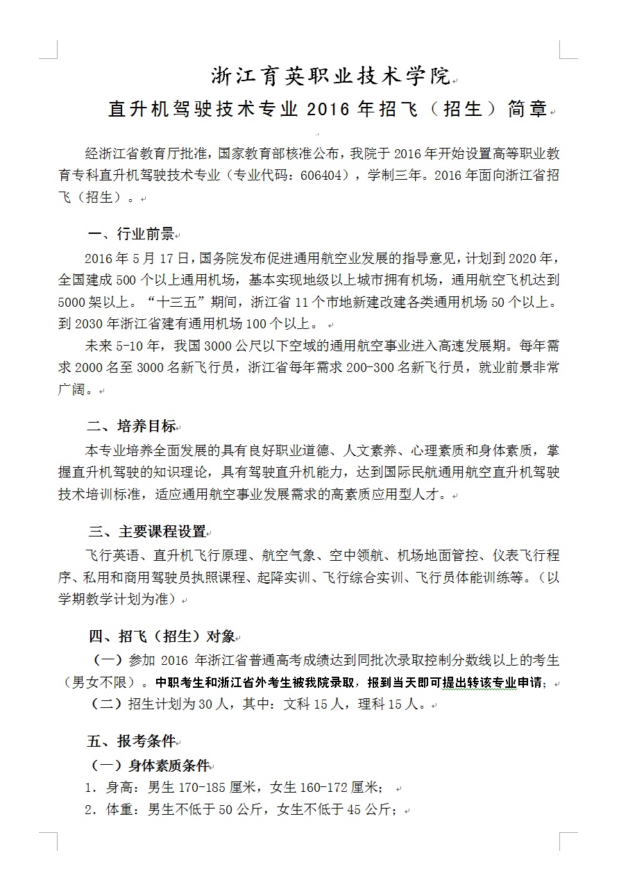“直升机驾驶技术”专业招生简章