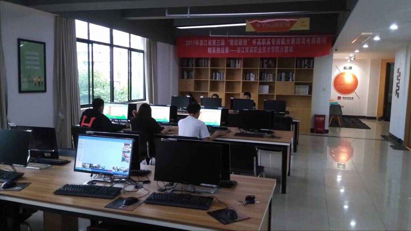 9月23日上午,2017年浙江省第三届“智欣联创”杯高职高专技能大赛跨境赛项精英挑战赛在我校图书馆二楼跨贸电子化实训基地举行,商贸分院16级跨境电商和16级国际贸易专业共六名学生两支队伍参加了比赛。