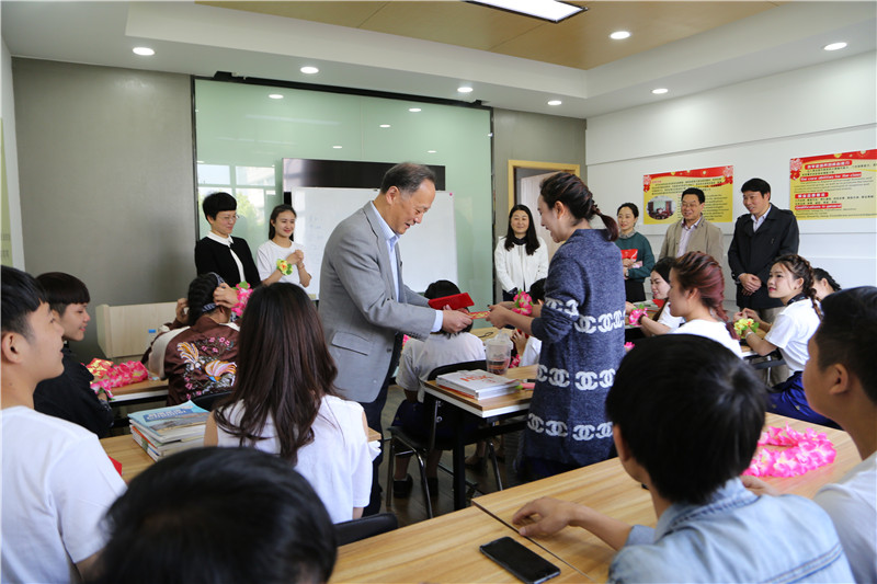 学院院长盛健,党委书记、副院长王锡耀,党委副书记、副院长谢鑫,以及经济管理分院领导谢厚华、谢剑峰、周岚,教务处处长罗振华,外事办副主任顾雪梅等领导和老师们来到老挝留学生身边,为他们送去真诚的祝福。