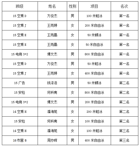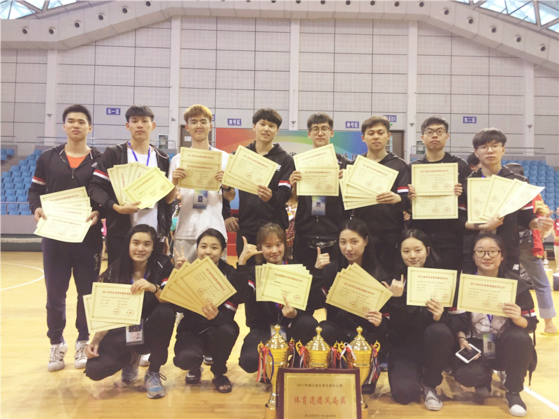 2017年5月19日-20日,2017年浙江省大学生游泳锦标赛在浙江财经大学举行,我院游泳队精神饱满、奋勇拼搏,经过激烈的角逐,斩获11金5银2铜,荣获总团冠军、男团冠军、女团亚军,学院获体育道德风尚奖号。教练楼俊毅获优秀教练员称号,潘海妮、方俊杰同学获优秀运动员称号。领队为季勋龙老师,教练赵佳子、楼俊毅、黄中华老师随队指导。