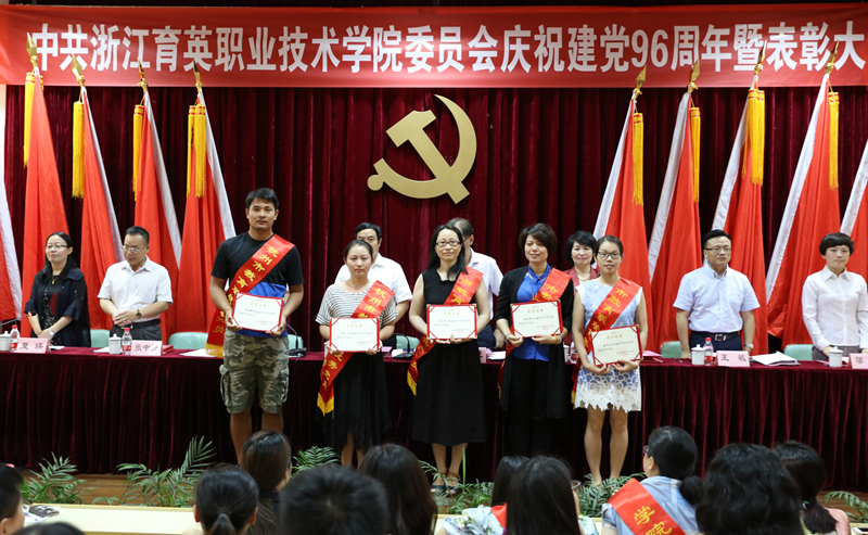 石华玲、傅祝屏、张荣、李巧巧、汤剑辉等5名杭州市教育系统优秀共产党员,民航交通分院学生一支部、商务贸易分院党总支部、经济管理分院教工党支部、机关党总支第二支部等 4个学院先进基层党组织 ;吕串、许琼华、姚蓓蕾等26名教职工优秀党员,肖任远、欧婧、朱力等 7名学院优秀学生党员,朱尧、傅晶瑶、傅祝屏7名学院优秀党务工作者;民航分院第4党章学习小组、第7党章学习小组、第9党章学习小组等12个学院先进党章学习小组受到表彰。