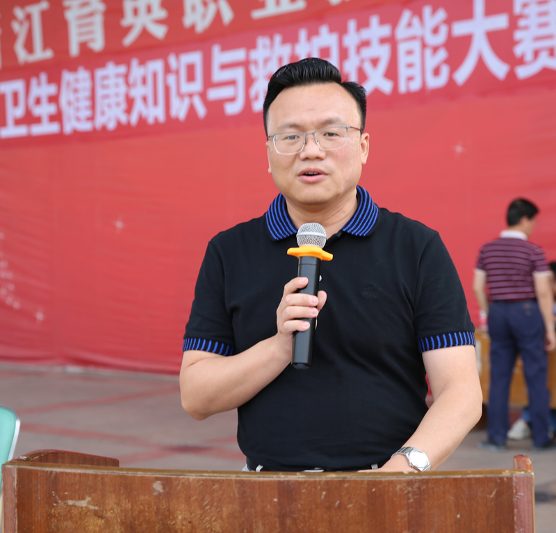 王敏作闭幕讲话,他希望有更多的同学能够在大赛的影响下,提升卫生健康救护能力和水平,继续团结和带领更多热血青年积极参与卫生健康知识技能大赛,投身到丰富的红十字志愿服务活动中去,传承“厚德载物、自强不息”的校训精神,为构建“人文、精致、开放、活力”特质的育英学院做出应有的贡献。