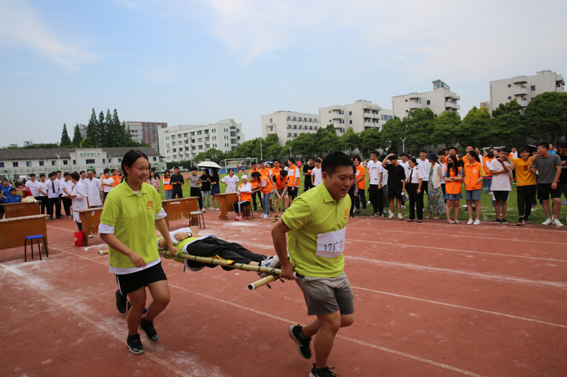 每年3-5月,都要对全院新生进行卫生健康救护知识教育,同时传授止血、包扎、固定、担架制作及搬运四项基本救护技能。为提高卫生健康教育的实效性,学院每年举行全院卫生健康救护技能大赛。从2005年至今,已经连续举办14届。该项活动深受广大师生欢迎,受到了省市红十字会的好评。《浙江日报》曾经图文报道我院红十字健康救护比赛活动。此次参赛的330名队员动作娴熟、准确到位、操作快速,一切紧张而有序。