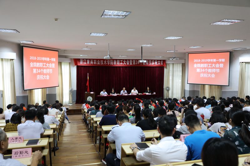 2018年9月8日,学院召开2018-2019学年第一学期全体教职工大会。学院院长盛健,党委书记、常务副院长王锡耀,副院长黄爱平,党委副书记、副院长谢鑫,副院长王敏出席会议。王锡耀主持大会。会议表彰了省、市、校三级先进集体和个人、组织新教职工宣誓、部署本学期主要工作。浙江省“三育人”先进集体和学院第六届“我最喜爱的老师”的代表交流了获奖体会。各分院负责人汇报了本学期主要工作规划。