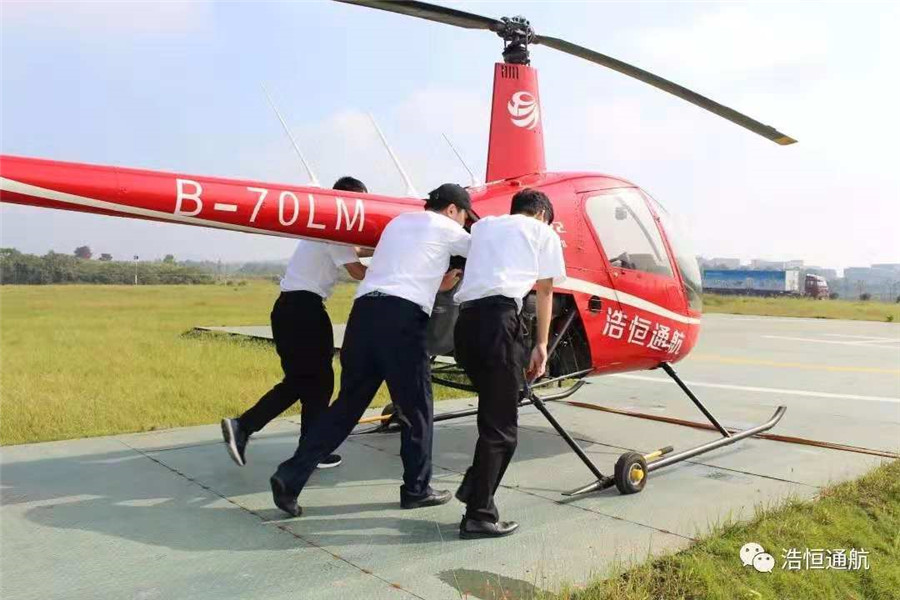 在飞行教员和机务人员期盼的目光注视下,在机务人员“OK”的手势示意下,身着白色飞行制服的郑浩杰,经过一系列仔细的准备工作,登上直升机驾驶舱,从容地启动、悬停检查、低空滑行、然后成功起飞。这是育英学院直升机驾驶技术专业首届学生首次单飞成功,是专业学习成果的展示,也标志着育英学院直升机驾驶技术专业建设、职业人培养的重要突破。