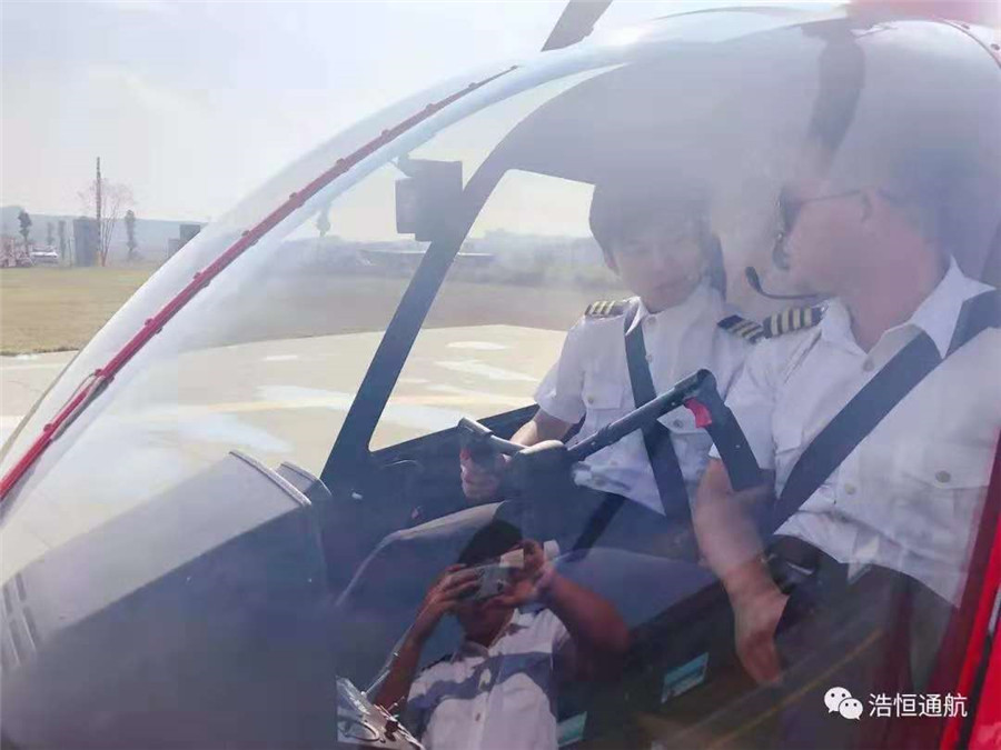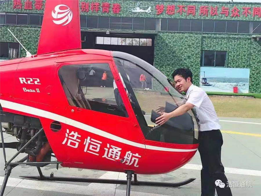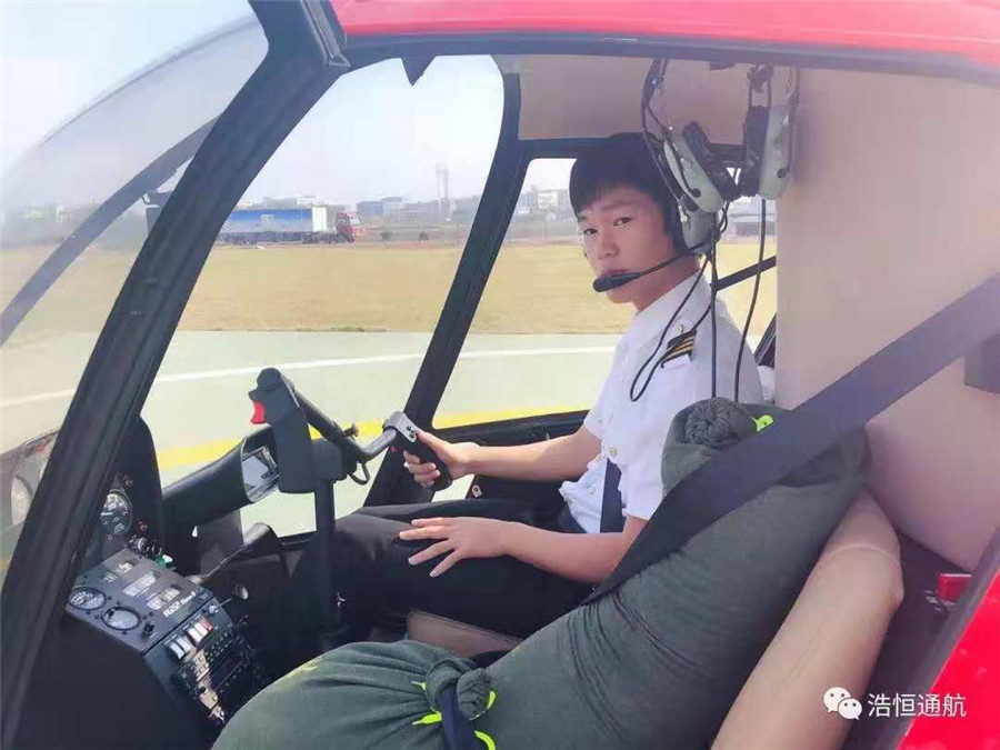 “第一次独自驾驶直升机飞上蓝天,有憧憬,有忐忑,更多的是跃跃欲试的激情在迸发。看着直升机在自己的操控下如同雏鹰般展翅翱翔,再平稳落地,表示单飞成功,也意味着拥有了独自驾驶的能力。”