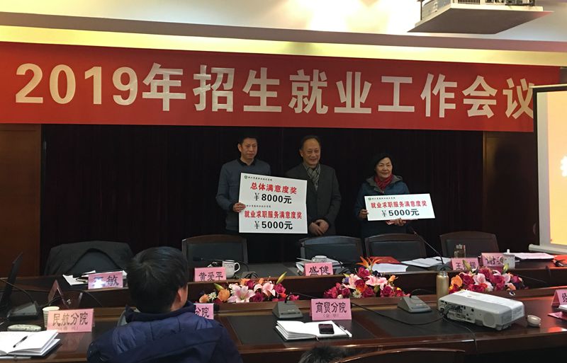盛健代表学院向各单位、各部门颁发了2018年招生和就业工作奖金、就业创业工作先进集体及个人的荣誉证书,并与各单位、各部门负责人签订了2019年招生工作目标责任书,与各分院负责人签订了2019年就业创业工作目标责任书。