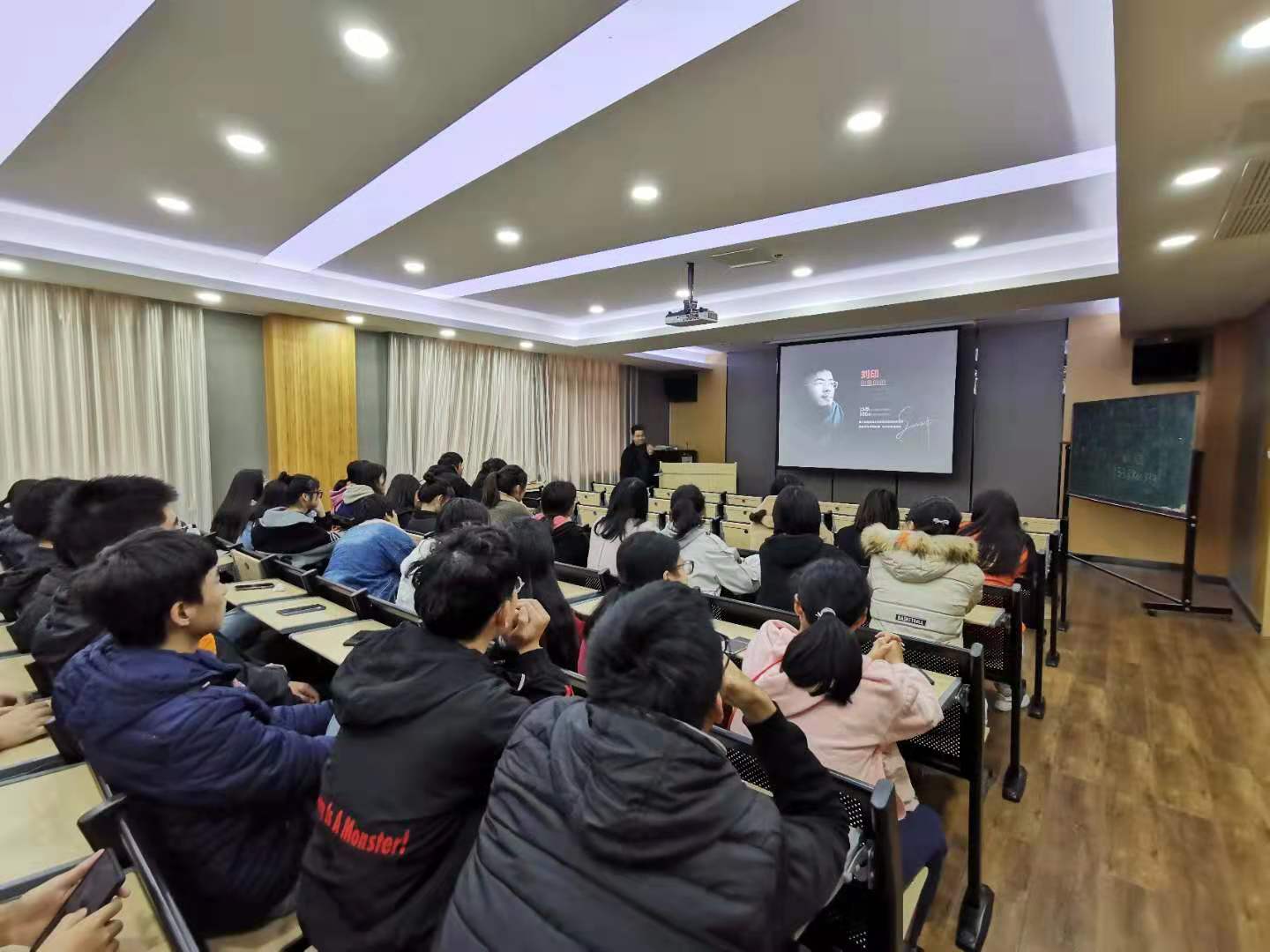 本次讲座刘印以自己所设计“老子养生酒”开篇介绍自己如何取得灵感获得66万设计大奖,鼓励小学弟学妹们要热爱生活、热爱设计,养成良好的工作习惯,并且鼓励当代大学生要用大学梦与大学理想,深入浅出要求同学端正自己在大学生活中的学生态度。