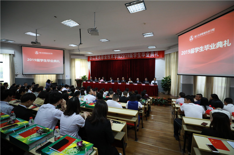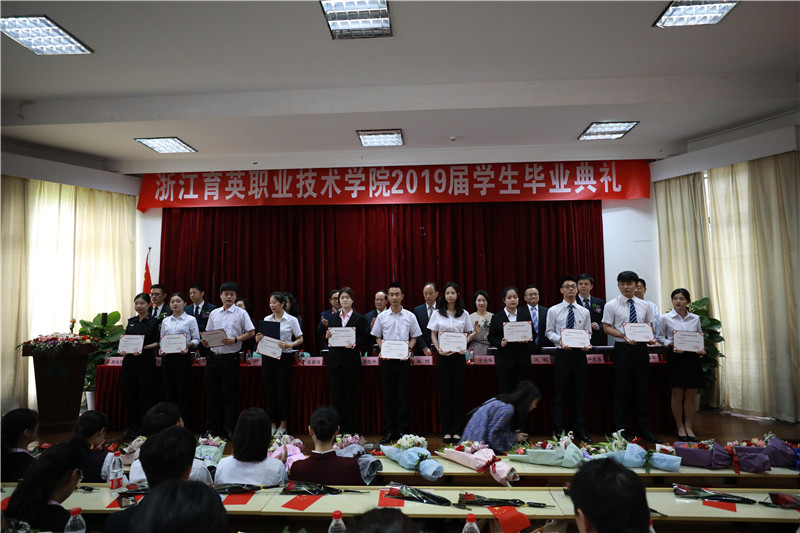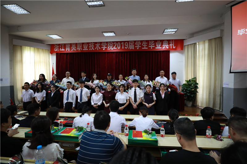 全体毕业生在谢鑫的主持下,举行了毕业礼,毕业生代表向教职工代表、家长代表、企业代表献花,师生代表为优秀毕业生代表佩戴大红花。