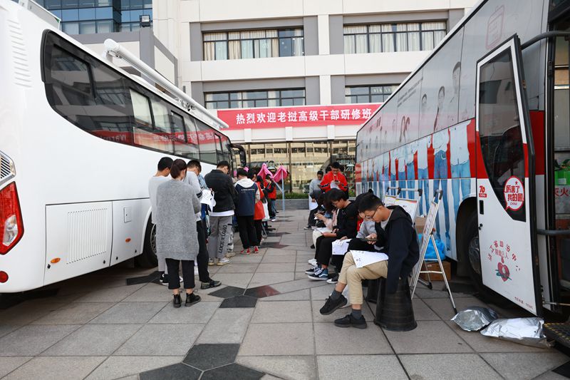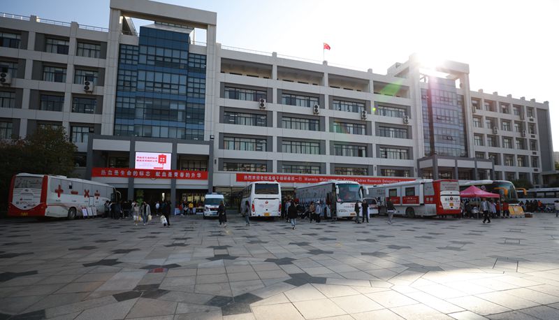 11月14日上午10:00,学院无偿献血活动在一号教学楼广场举行。882名师生献血268070毫升。