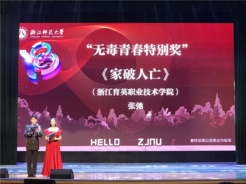此次竞赛由浙江省大学生科技竞赛委员会主办,浙江省公安厅、浙江省禁毒办协办,浙江师范大学承办,共收到省内110 所高校1116件参赛作品。金华市副市长、公安局长董旭斌,省公安厅禁毒总队总队长陈斌等出席颁奖典礼。