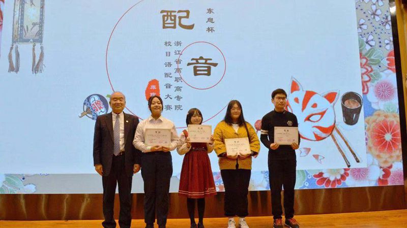 12月12日,“东息杯”浙江省高职院校日语配音大赛在杭州举行。应用日语专业林倩红、周龙、陈科雯、倪浩量、李玟小队获一等奖。周龙、李武潭、陈栋、黄昊炎小队获二等奖,叶子豪、李武潭、金孝全、王乐瑶小队和叶子豪、高鑫宇、钟雨霏小队分别获三等奖。指导老师为何露丹、张婵娟、傅晶、日籍外教成田真公子。