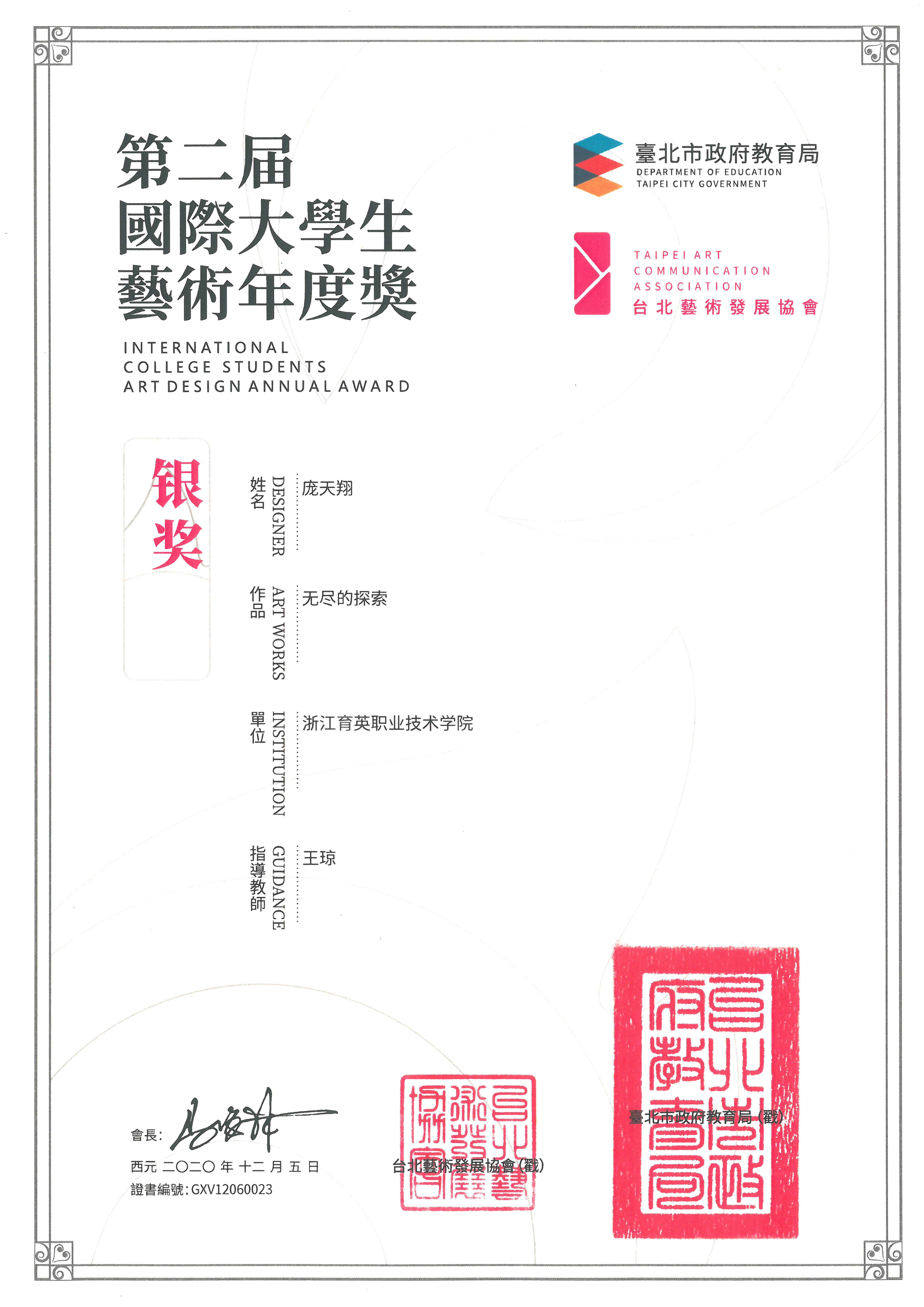 环艺学生在第二届国际大学生艺术年度奖上获银奖