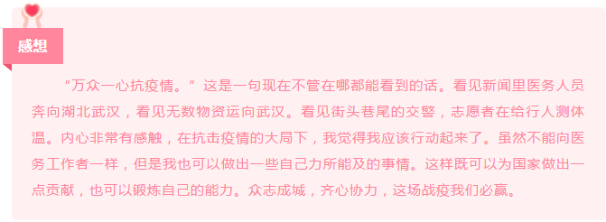 在疫情这场战役中,除了战斗在一线的医护工作者们,还有在疫情防护工作的志愿者们,是他们的默默付出,使我们在这特殊时期感受到了温暖与安全。 18酒店洲际英才班:高晓鑫
