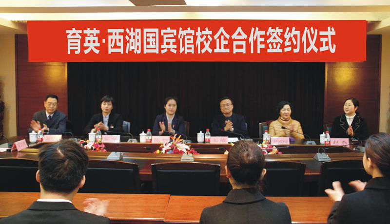 长期以来,育英学院与西湖国宾馆紧密合作,并为其输送了一批批优秀毕业生。翟华经理介绍,毕业生钱宇凯担任宾馆主持人、抖音团队长,个人工作表现及业绩突出,获得2018年度杭州西湖国宾馆“名园之星”、2019年销售达人奖;周希云是G20杭州峰会期间实习后留用在中餐厅就业,只要有国宾接待宴会等重要活动都会参与服务。