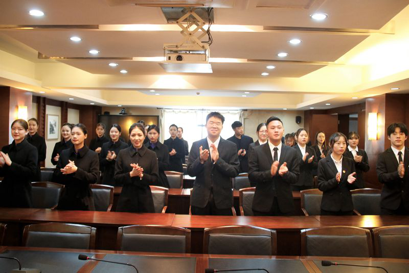 杭州西湖国宾馆人事经理翟华、民航交通分院院长赵淑桐,经济管理分院院长谢厚华、教务处(产学合作)副处长赵燕以及民航分院、经管分院30名学生代表参加签约仪式。