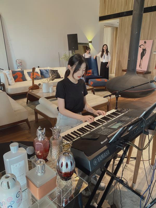 交流中,在随机产品选择情况下,周楚慧同学临场为各位领导嘉宾做了一场即兴直播,获得了全体人员的热烈掌声,得到了高度评价与赞誉,充分展示了育英学子的技能、自信与风采。
