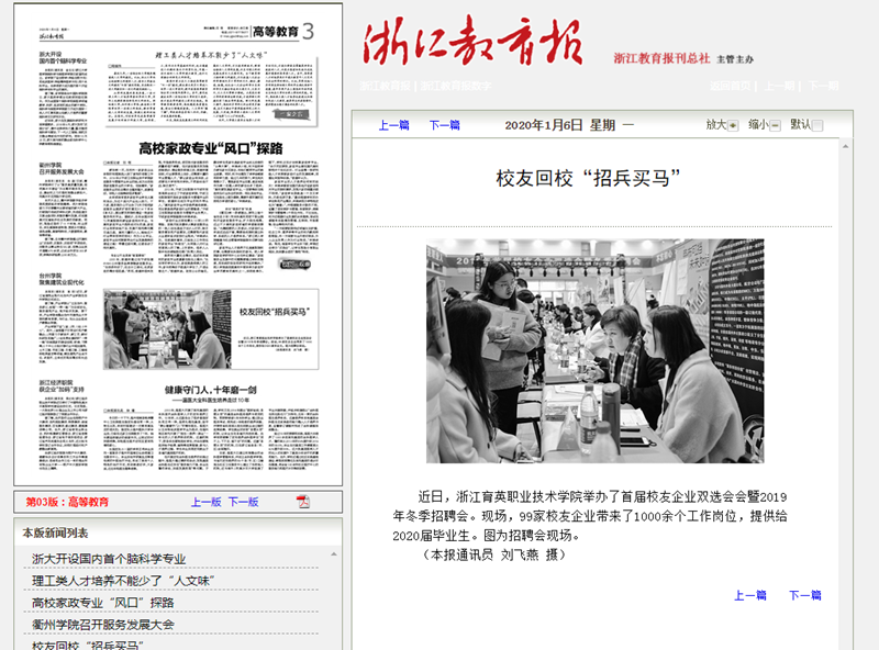 【浙江教育报】校友回校“招兵买马”