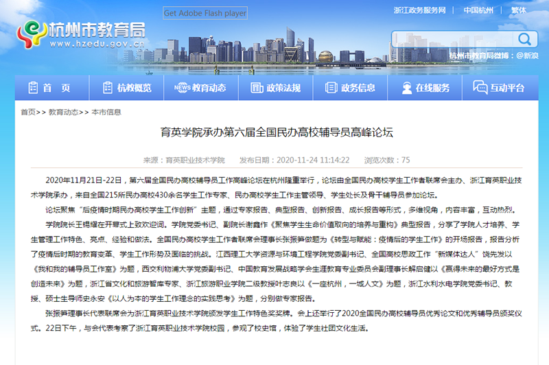 【杭州教育局网站】育英学院承办第六届全国民办高校辅导员高峰论坛