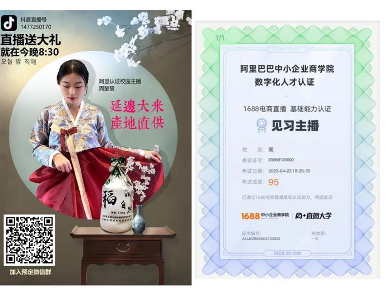 2020年4月13日至4月17日晚,商务贸易分院在获阿里巴巴中小企业商学院认证的学生中选拔的5位优秀校园主播,经过专题培训后正式开播。五位校园主播轮番上场,参与电商扶贫项目,对吉林省延边朝鲜族自治州龙井市老头沟镇廉明村生产的大米进行多种形式的推荐。