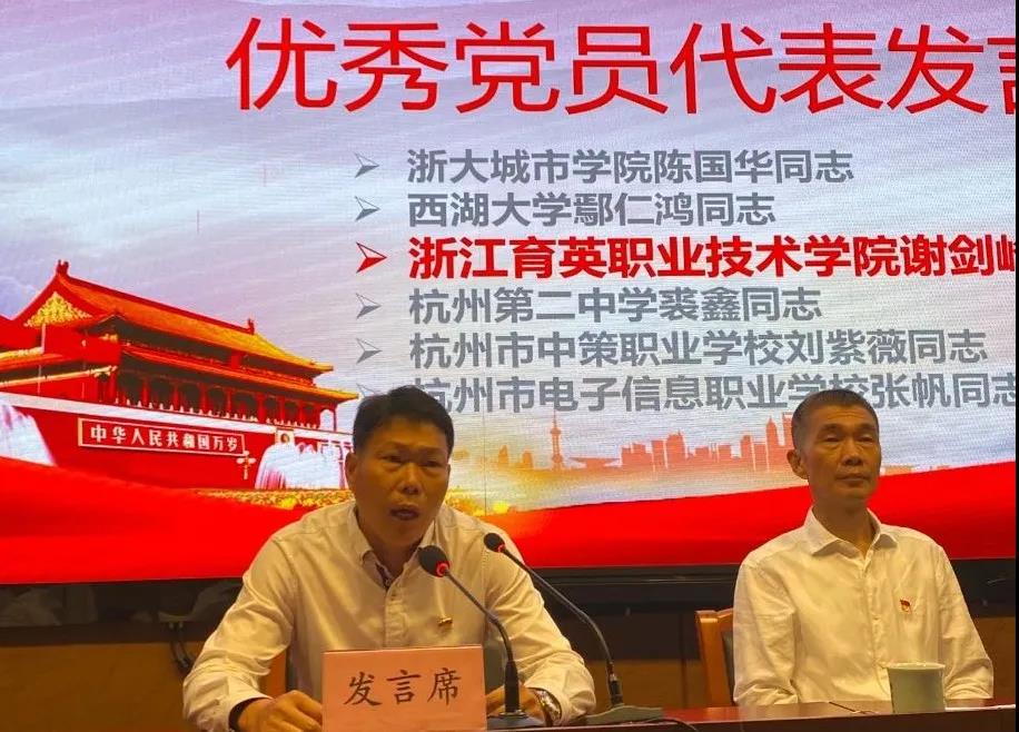 6所院校的优秀党员代表在会上作了交流发言。我院经济管理分院党总支书记谢剑锋以《有为才有位,有位更可为》为题,代表优秀党员,介绍如何坚持体育育人,让学生在网球中找到快乐与自信;坚持理论引领,为国际生讲好中国故事;坚持党建创新,创建全省高校首批党建特色品牌等方面做法和经验。