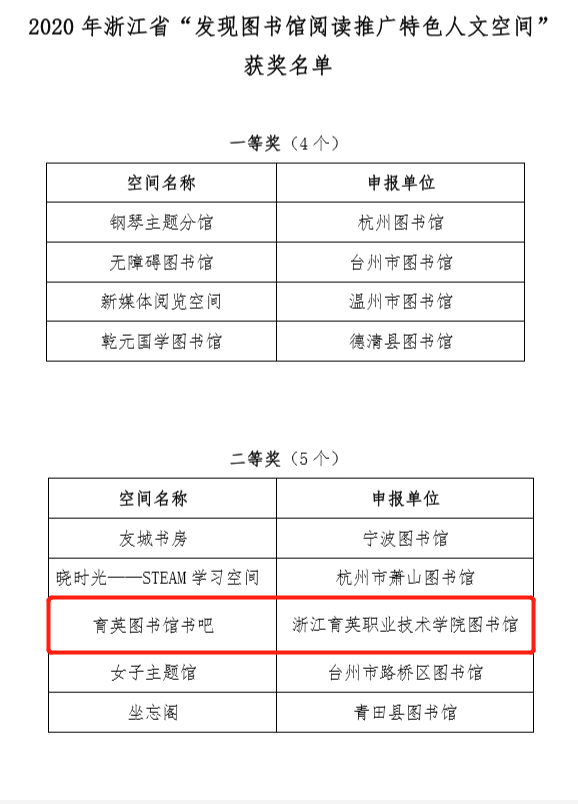 育英书吧获省图书馆学会“发现图书馆阅读推广特色人文空间”二等奖